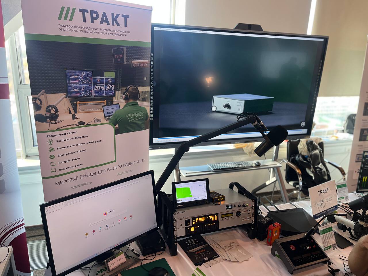 На стенде «ТРАКТ» гости могли познакомиться с оборудованием и протестировать его: микшерный пульт Синерджи Мини, FM‑приёмник ТР‑705, система служебной связи Синапс, станция автоматизации вещания ТР‑900М и др. А наши специалисты проводили консультации, отвечали на вопросы и были очень рады повидаться со всеми вживую.