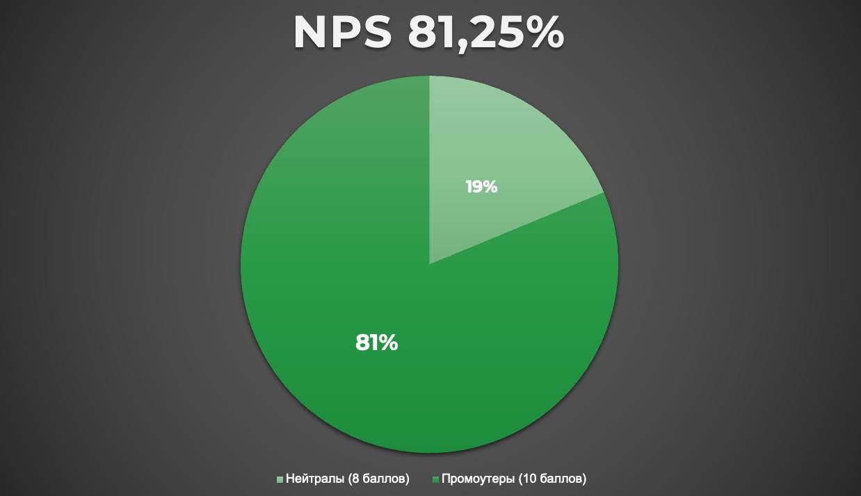 В конце материала делимся результатами NPS‑опроса. Они говорят о главном: нам доверяют и любят, рекомендуют другим и хотят с нами работать.