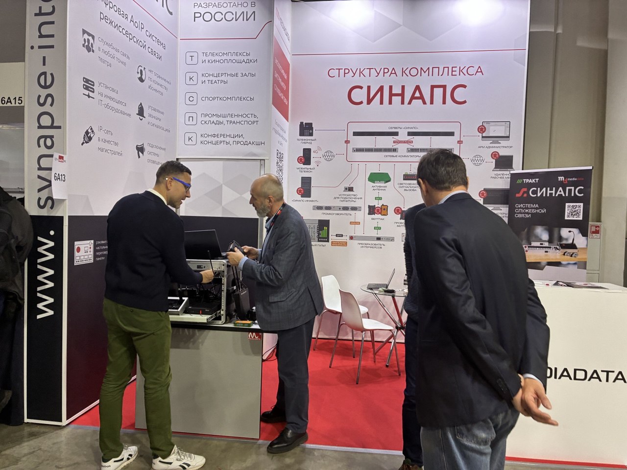 На Light + Audio Tec 2025 коллеги из «МедиаДата» показали гостям стенда разработанное в этом году оборудование Синапс. На стенде провели демонстрацию демокомплекса и представили обновлённые абонентские устройства.